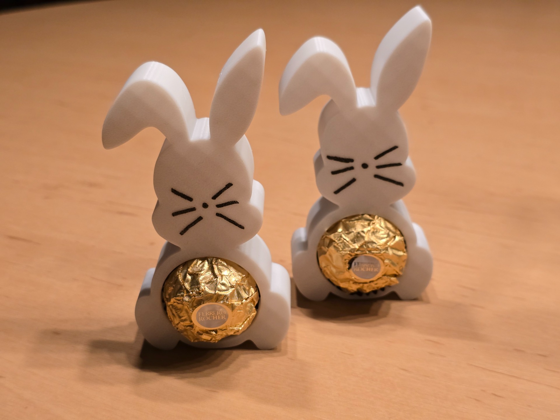 Süßer Hase aus dem 3D Drucker. Nach dem "Vernaschen" kann er auch sehr gut eingerollte Servietten als Tischdeko halten.