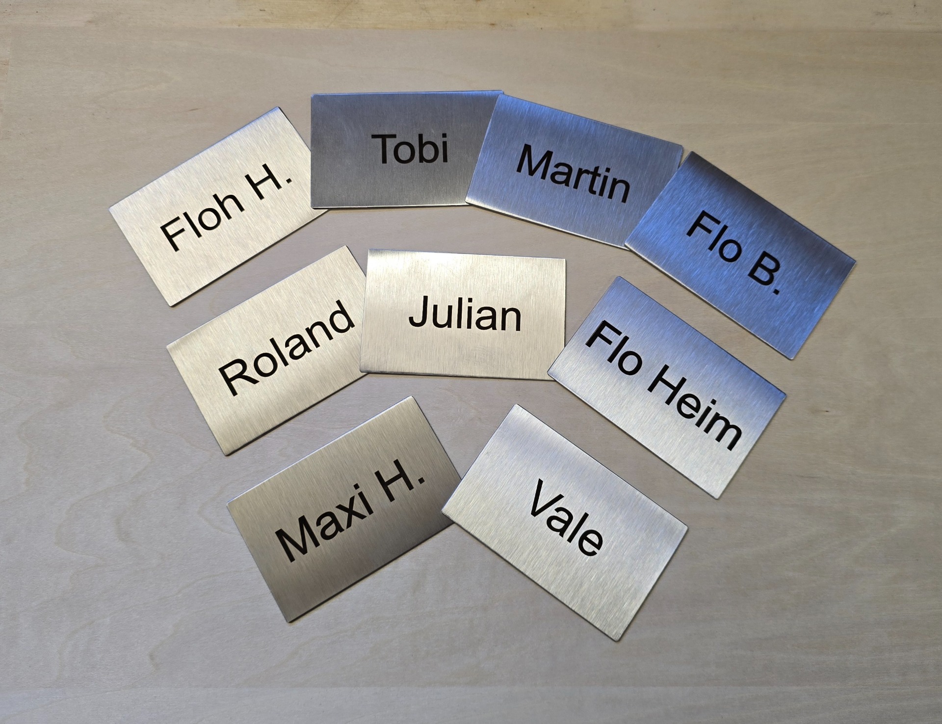 Wetterfeste Gravur auf Edelstahlplatten. Ideal zur individuellen Beschriftung von Briefkästen, Klingeln und Schränken etc.