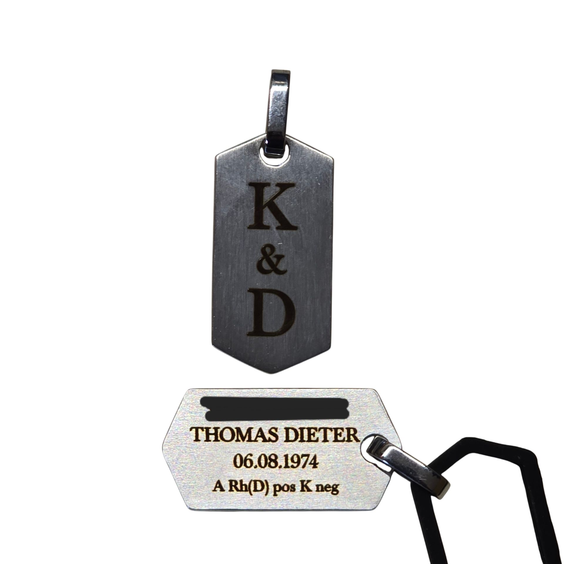 Gefertigt aus Edelstahl und graviert nach Wunsch der Auftraggeberin.
